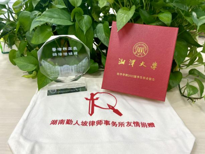 勤人坡律师事务所去年向我院捐赠了700套2021届毕业生纪念品,今年继续捐赠2022届毕业生纪念品750套。本次纪念品为水晶摆件和帆布袋,水晶摆件上印有雄伟大气的法学楼和“养浩然正气,铸法治精魂”的院训,帆布袋印有校徽和“bevictor伟德官网2022届学生毕业留念”等字样。这份具有特殊意义的毕业纪念品承载着母院对毕业生们的祝福与希冀,将陪伴着毕业生们开启人生的新篇章,也时刻提醒着毕业生们秉持院训精神,做出湘大法律人的贡献。