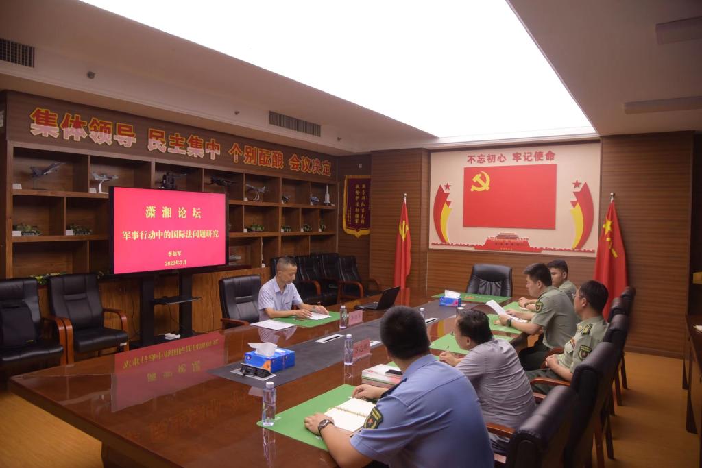 应解放军长沙军事检察院邀请,我院军事法研究中心万志鹏、李伯军教授于2023年7月10日赴长沙军事检察院进行学术交流。杨建魁检察长代表长沙军事检察院对我院军事法研究中心的来访表示热烈欢迎,并介绍了长沙军事检察院的基本情况。万志鹏教授也就我院军事法研究中心的概况向对方单位进行了介绍。当晚,李伯军教授作了题为《军事行动中的国际法问题研究》的学术报告,杨建魁检察长、第一检察室陆明浩主任、田锦程检察官等十余人参加了座谈会。双方就军事行动中的国际法问题及法律战进行了广泛研讨,推动了军地之间、检校之间的军事法学术交流。双方表示未来将进一步开展军事法理论及实务方面的合作。