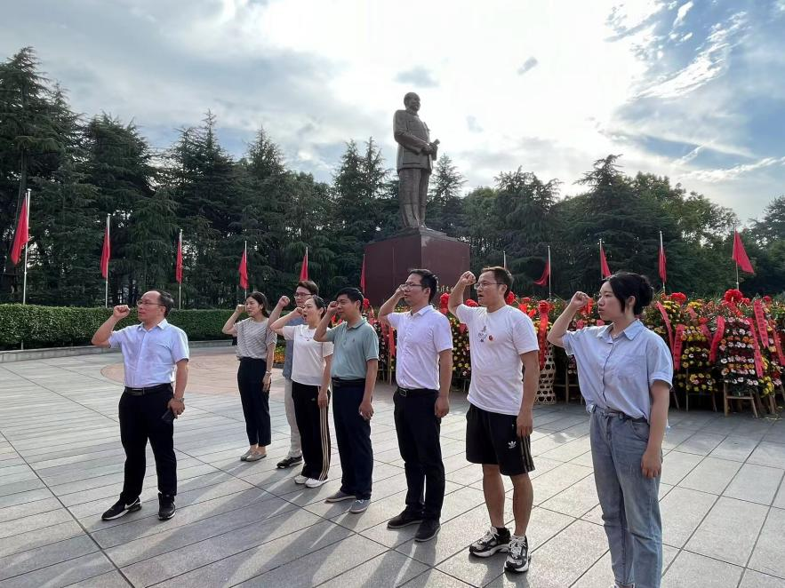 下午,各位老师抵达韶山,观看《最忆韶山冲》,重走伟人“革命之路”,追忆伟人的光辉岁月。之后,各位老师来到毛泽东铜像广场,肃穆静立,敬献花篮并鞠躬缅怀。在瞻仰仪式结束后,田良富带领学院党员教师重温入党誓词:“我志愿加入中国共产党,拥护党的纲领,遵守党的章程,履行党员义务……为共产主义奋斗终生,随时准备为党和人民牺牲一切,永不叛党。”
