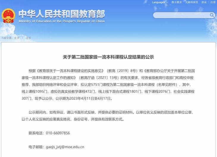 为大力推进适应新时代高质量发展要求的一流本科课程建设,加快建成中国特色、世界水平的一流本科课程体系,推进“学习革命”向“质量革命”纵深发展,教育部启动了国家级一流本科课程建设项目,该项目每两年评选一次,评选结果凝聚了国家教育部门的专家和学者的广泛共识,具有权威性和公信力。
