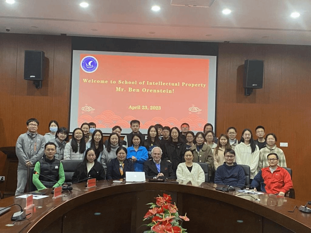 肖冬梅总结发言,用三个词来描述本次知识产权讲座的魅力:“无边界”——知识产权在几乎每个行业和国家都是必不可少的;“战略”——知识产权可以让一个国家或企业站得更高,走得更远;“强大”——知识产权是企业创新和成功的关键。肖冬梅再次感谢Mr.Ben Orenstein的精彩讲座,并表示希望将来能有机会与Mr.Ben Orenstein合作,同时寄语学生:希望同学们在知识产权的学习道路上更坚定的走下去。讲座结束后,主讲嘉宾及部分参会师生集体合影留念。(文稿:刘安妮)