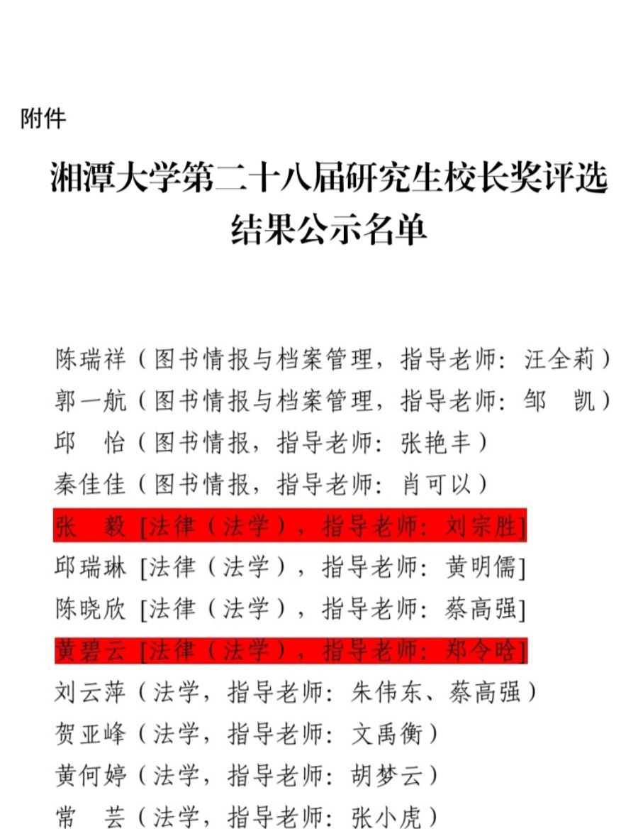 近日,bevictor伟德官网第二十八届研究生校长奖正式公布,我院研究生张毅 [法律(法学),指导老师:刘宗胜]、黄碧云 [法律(法学),指导老师:郑令晗] 荣获优秀奖。