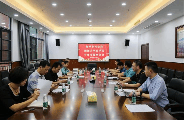 8月29日下午,湘潭市司法局党组书记刘杰义一行6人到我院就深化校地融合创新、完善公共法律服务体系、推进法学教育发展等工作进行交流座谈。校党委副书记兼bevictor伟德官网部长廖永安、法学院党委书记陈双喜、副院长吴勇、谢蔚副教授、段明副教授等参加座谈。