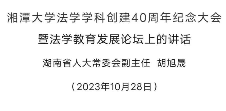 大家上午好!很高兴再次踏上湘大这片热土,与大家一起见证湘大法科四十年来的成长与成就,在中国法学教育的守正与创新这个大背景下,共同探讨湘大法科的未来!刚才,我与大家一道认真聆听了前面各位嘉宾的精彩致辞,既很受鼓舞,也深受感动感染,这不禁勾起了我的往事回忆,特别是在秋意渐浓之际、相聚欢庆之时,使人感慨流年飞逝、更忆峥嵘岁月!1983年,湘大法科开始招收第一批本科生,正式开启了湖湘法学教育新风。我有幸于1987年7月从中国人民大学法律系硕士毕业来到湘大法律系工作,后于1997年7月在人民大学法学院完成全脱产三年博士学习,同时被任命为湘大法学院副院长,直至2001年初离开。至此,我在湘大法学院全职工作了10年。2001年初调任省社院之后的六七年里,我的工资关系依然保留在湘大,依然深度参与着湘大法学院的教学与学科建设。作为湘大法律系建设的早期参与者,我经历了在湘大这片黄土高坡上创办法科的艰辛;作为湘大法学院曾经的院领导和后来的参与者,我也感受了湘大法科建设取得种种成绩和突破时的兴奋与激情。我还清晰地记得自己当年主持厘定“养浩然正气、铸法治精魂”院训时与大家字斟句酌的情景,记得开辟非洲法研究新领域时的执着与坚持,记得争取法律专业硕士学位和诉讼法、法律史两个博士点时与同事们共同的四处奔波,记得2000年春天在湘大主持法治建设南北学者大对话时的盛况,记得杨翔院长、谢勇主任和我作为湘大法学院的教师分别担任全国人大代表和全国政协委员同时出席全国两会、被媒体誉为“湘大三剑客”的独特景象……作为湘大法学院四十年发展历程的一名见证者和参与者,我深深体会到湘大法科建设之不易。四十年来,湘大法科能立定三湘四水,进而辐射全国,必然有很多成功的路径和经验,我想,至少以下五个方面是值得充分肯定、高度重视和倍加珍惜的。