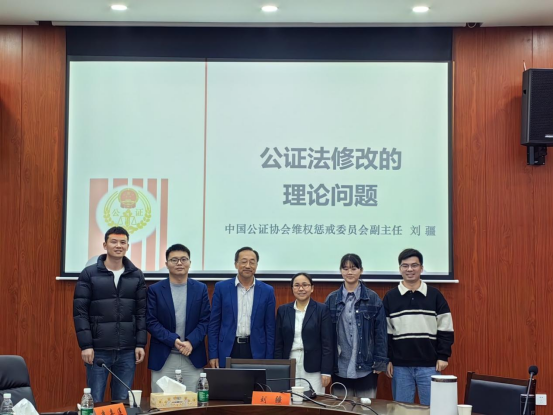 刘疆副主任的讲座结合外国立法例、实务案例,紧紧围绕公证法修改的8个现存问题以及公证行业现实状况展开讨论,阐述了公证的性质、定义,公证制度的核心价值、公证机构的性质与组织形式、公证处业务范围、公证的执业主体、执业区域,公证行业惩戒制度的完善、救济程序的重构,理论与实践相结合,生动形象、鞭策入里。并鼓励广大师生积极投入公证理论研究与实务实践,为促进公证事业发展做出自己的贡献。