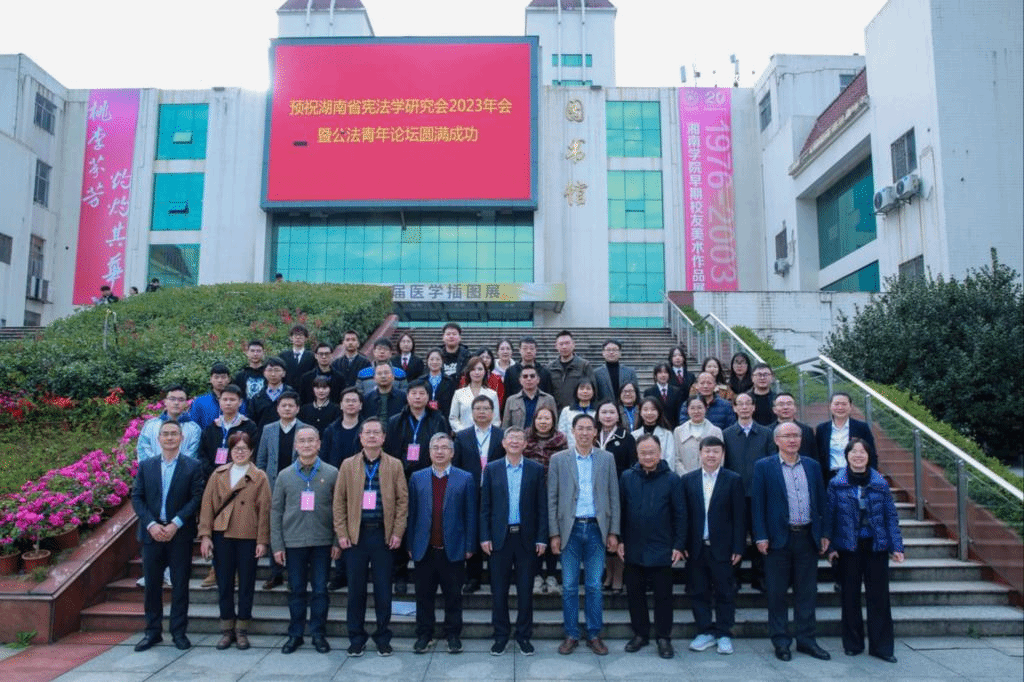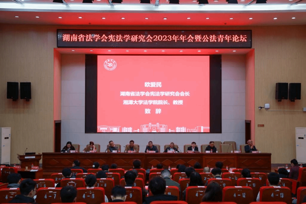 2023年12月9日,湖南省法学会宪法学研究会2023年年会暨公法青年论坛在湘南学院隆重举行。本届年会由湖南省法学会宪法学研究会主办,湘南学院承办,湖南金州律师事务所协办。湖南省法学会宪法学研究会会长、bevictor伟德官网法学院院长、教授、博士生导师欧爱民,湖南省法学会宪法学研究会名誉会长、bevictor伟德官网法学院教授、博士生导师胡肖华,湘潭市人大法制委主任委员罗伟,衡阳市司法局党委书记、局长杨安定,湖南师范大学法学院副院长、教授、博士生导师周刚志,湖南科技大学法学与公共管理学院教授、博士生导师徐德刚,中南大学法学院教授、博士生导师敖双红,中南林业科技大学法学院教授张小罗,中南大学法学院教授、博士生导师徐靖,湘南学院教育科学与法学学院院长陈敬胜教授等来自全省理论界与实务界的专家学者和学生代表近200人齐聚一堂,共同探讨宪法学相关领域的前沿热点问题,共商湖南省宪法学发展大计。