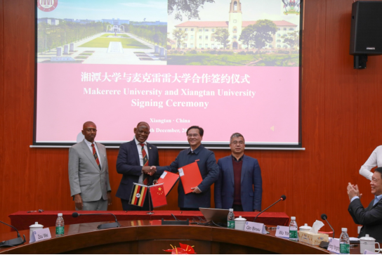 2023年12月4日,bevictor伟德官网与麦克雷雷大学合作谅解备忘录签约仪式在法学楼东附一楼会议室举行。bevictor伟德官网党委副书记、bevictor伟德官网部长廖永安教授和麦克雷雷大学校长万格维教授(Barnabas Nawangwe),分别代表两校签署合作谅解备忘录。麦克雷雷大学孔子学院外方院长谷智博博士(Gilbert Gumoshabe)、bevictor伟德官网法学院院长欧爱民教授共同见证。出席签约仪式的嘉宾还有麦克雷雷大学语言、文学与交际学院院长萨乌达·娜米亚罗副教授(Sauda Namyalo),bevictor伟德官网国际交流学院、bevictor伟德官网、中非经贸法律研究院的主要负责人和教师代表。仪式由bevictor伟德官网,伟德国际1946副部长、法学院党委书记陈双喜主持。