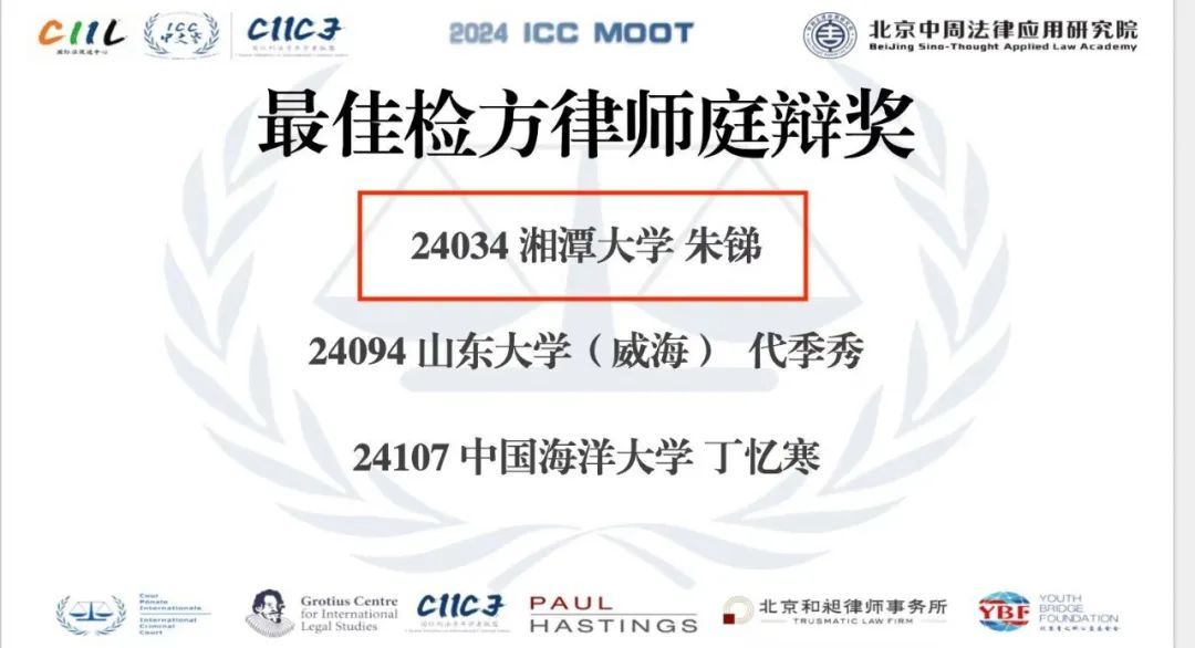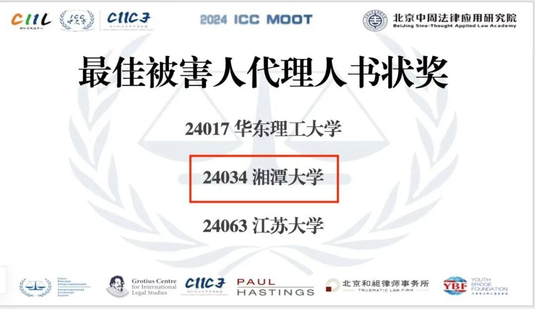 最后,bevictor伟德官网代表队继2022年获得ICC中文赛全国一等奖后,三年内再次成功斩获ICC中文赛一等奖。同时,bevictor伟德官网代表队还赢得“最佳被害人代理人书状奖”“最佳检方律师”“最佳检方律师庭辩奖(朱锑)”,实现赛事奖项大满贯!