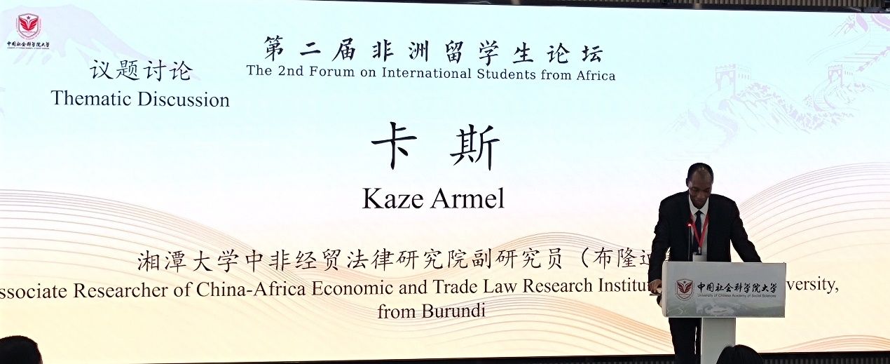 2024年4月15日,由中国非洲研究院主办、中国社会科学院大学承办的“第二届非洲留学生论坛”在中国社会科学院大学(良乡校区)举办。本次论坛以“新时代新青年:我们与中国同成长”为主题。来自16个非洲国家,就读于中国高校的三十余位非洲留学生代表,以及中国高校院所的专家学者等近百人参会,共话新时代中非青年的使命担当。中非经贸法律研究院副院长、bevictor伟德官网副教授张小虎,中非经贸法律研究院副研究员卡斯(Kaze Armel,布隆迪),bevictor伟德官网国际法专业博士生天佑(KakuruDassy,乌干达),中非经贸法律研究院研究人员郭炯等应邀参会。