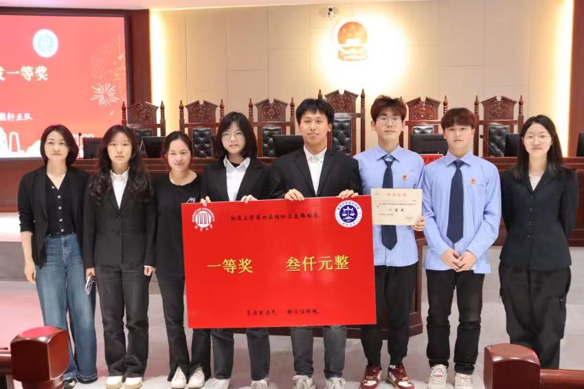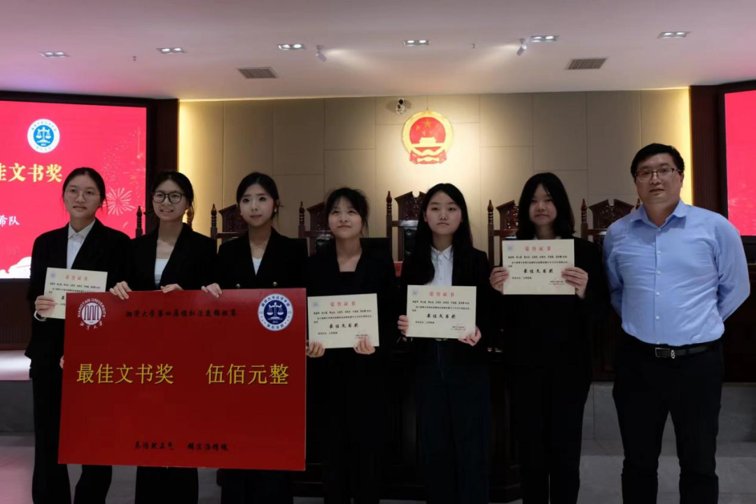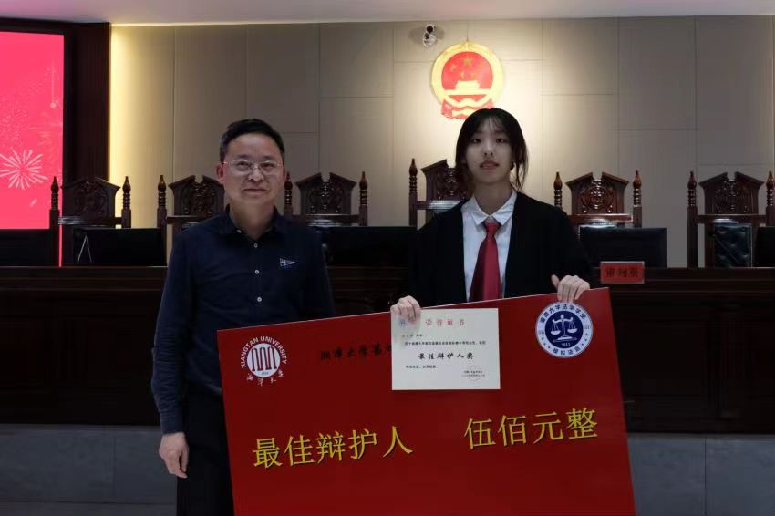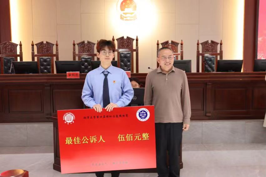 本次比赛的合议庭由湘潭市人民检察院李谭嫱主任、湘潭市中级人民法院副庭长赵祝和湘潭市律师协会副会长许伟组成。bevictor伟德官网,伟德国际1946部长李仕春教授、副部长连光阳副教授、党委副书记黎益君副教授和学科竞赛办公室主任张永江副教授莅临指导。