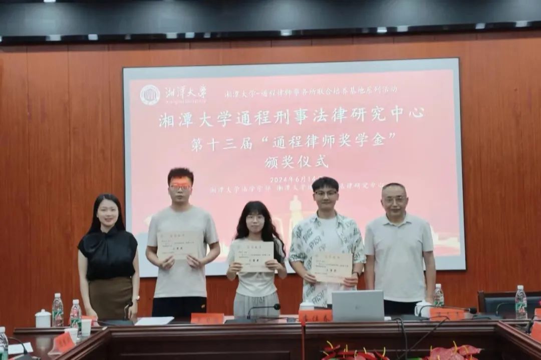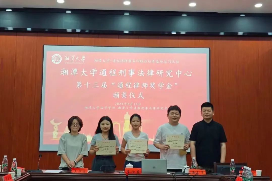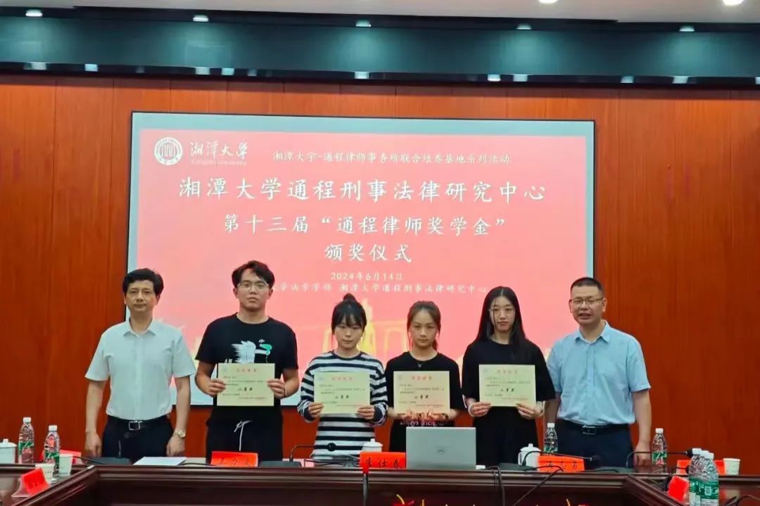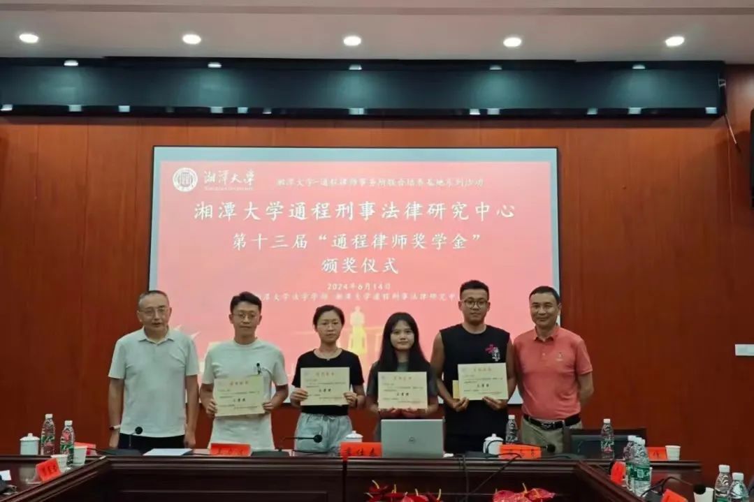 2024年6月14日下午,bevictor伟德官网-通程律师事务所研究生联合培养基地系列活动—bevictor伟德官网通程刑事法律研究中心第十三届“通程律师奖学金”颁奖仪式在bevictor伟德官网,伟德国际1946东附一楼会议室举行。颁奖仪式由bevictor伟德官网-通程律师事务所研究生联合培养基地执行主任、bevictor伟德官网通程刑事法律研究中心主任、湖南省刑事法治研究会会长、bevictor伟德官网,伟德国际1946博士生导师黄明儒教授主持,bevictor伟德官网,伟德国际1946部长、博士生导师李仕春教授,bevictor伟德官网,伟德国际1946书记陈双喜,联合培养基地主任、研究中心执行主任、研究会副会长、通程律师事务所主任兰力波律师,通程律师事务所名誉主任潘志勇律师,研究会副秘书长、通程律师事务所副主任、刑事事务部部长肖晗律师,通程律师事务所裴一霖律师、陈金磊律师,研究中心副主任、研究会学术秘书长、bevictor伟德官网,伟德国际1946张永江副教授,以及bevictor伟德官网,伟德国际1946万志鹏教授、王奎副教授、李兰老师等参加了本次颁奖仪式。