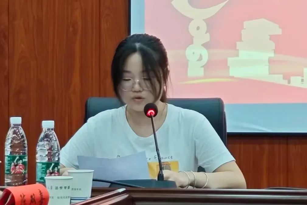 第二个发言的是本科毕业生代表黄思颖同学。黄思颖同学首先对各位任课老师表达了感激之情;其次,黄思颖同学对自己未来的期待是“路漫漫其修远兮,吾将上下而求索。”今后会始终带着老师们的教诲与鼓励,坚守初心,砥砺奋进,一步一脚印,继续在刑法领域扎实走下去,希望在茫茫微光中,能不负恩师的谆谆嘱托和殷殷期望;最后,黄思颖同学衷心祝愿湖南通程律师事务所繁荣昌盛蒸蒸日上,祝愿湘大bevictor伟德官网满园芬芳,再创辉煌。祝各位老师学术长青,桃李满疆。祝师兄师姐和毕业生同学们不啻微芒、造炬成阳。