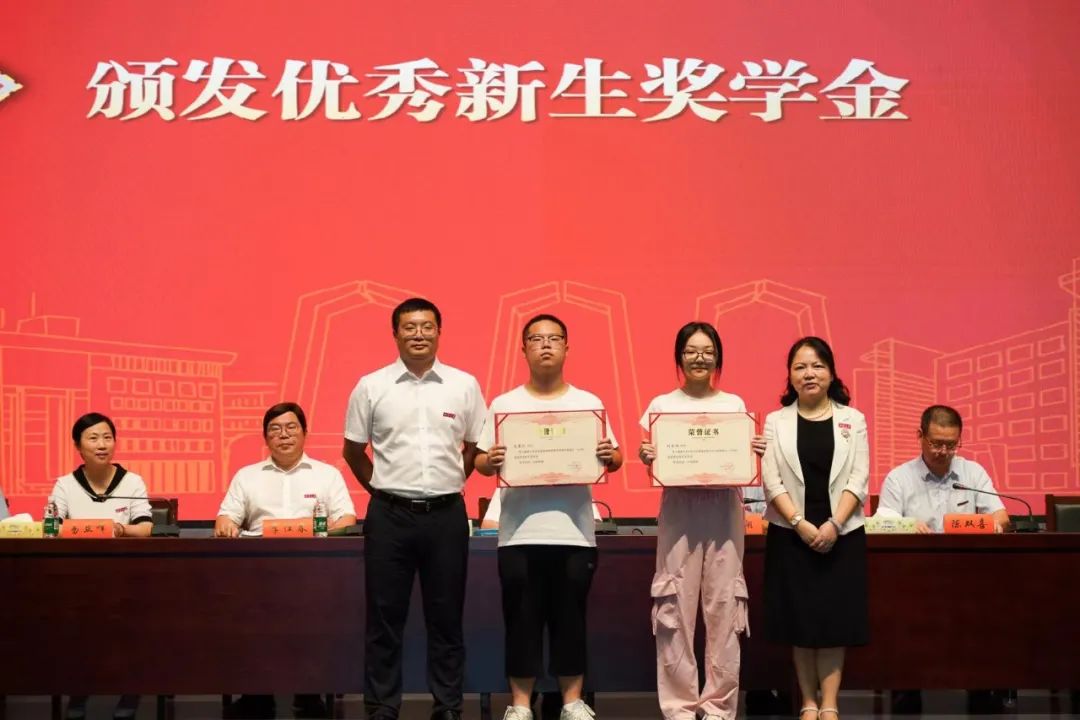 上午9时,开学典礼在雄壮的国歌声中拉开帷幕。黎益君副书记宣读《bevictor伟德官网关于表彰优秀新生奖学金获得者的决定》,连光阳、尹湘南为获得“优秀新生奖学金”的刘承明、高慕仪同学颁奖。