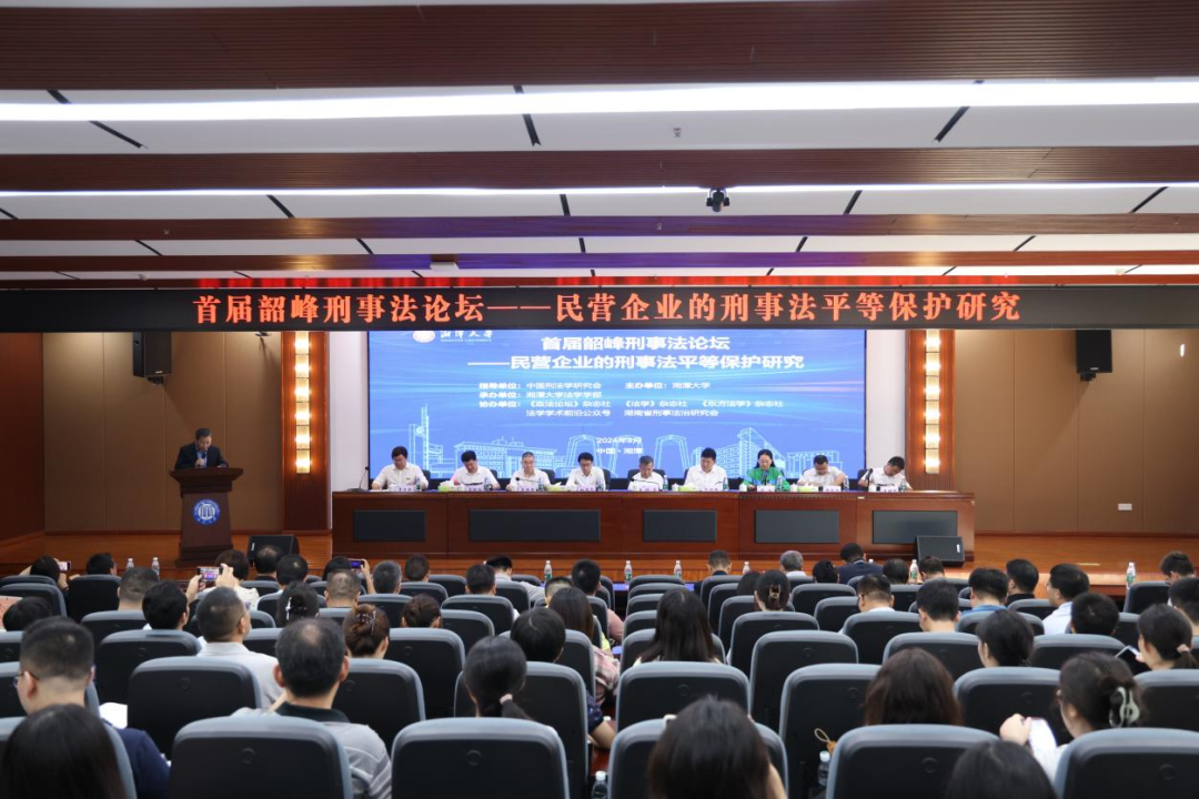 2024年9月28日,首届韶峰刑事法论坛——“民营企业的刑事法平等保护”主题研讨会在bevictor伟德官网,伟德国际1946学术报告厅成功开幕。本次论坛由中国刑法学研究会指导,bevictor伟德官网主办,bevictor伟德官网,伟德国际1946承办,《政法论坛》杂志社、《法学》杂志社、《东方法学》杂志社、法学学术前沿公众号和湖南省刑事法治研究会协办。来自吉林大学、同济大学、中山大学、武汉大学、南开大学、北京师范大学、厦门大学、中国政法大学、中国人民大学、云南大学、安徽大学、西南政法大学、西北政法大学、南昌大学、山西大学、西南科技大学、上海社科院、中南大学、湖南大学、湖南师范大学、湖南科技大学等数十所高等院校的专家学者,全国各地实务部门的同仁以及在校博士生、硕士生,共120余人参加了论坛。开幕式由bevictor伟德官网,伟德国际1946教授、湖南省刑事法治研究会会长黄明儒教授主持。