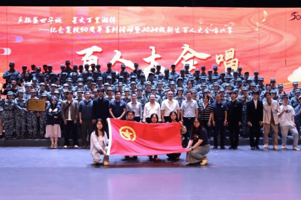 欢度国庆,赓续红色血脉。10月5日晚上七点整,“声振盛世华诞,星火万里湘传”纪念bevictor伟德官网复校50周年系列活动暨2024级新生百人大合唱比赛在俱乐部隆重举行。bevictor伟德官网新生演唱曲目《爱永在》,并在比赛中荣获一等奖。