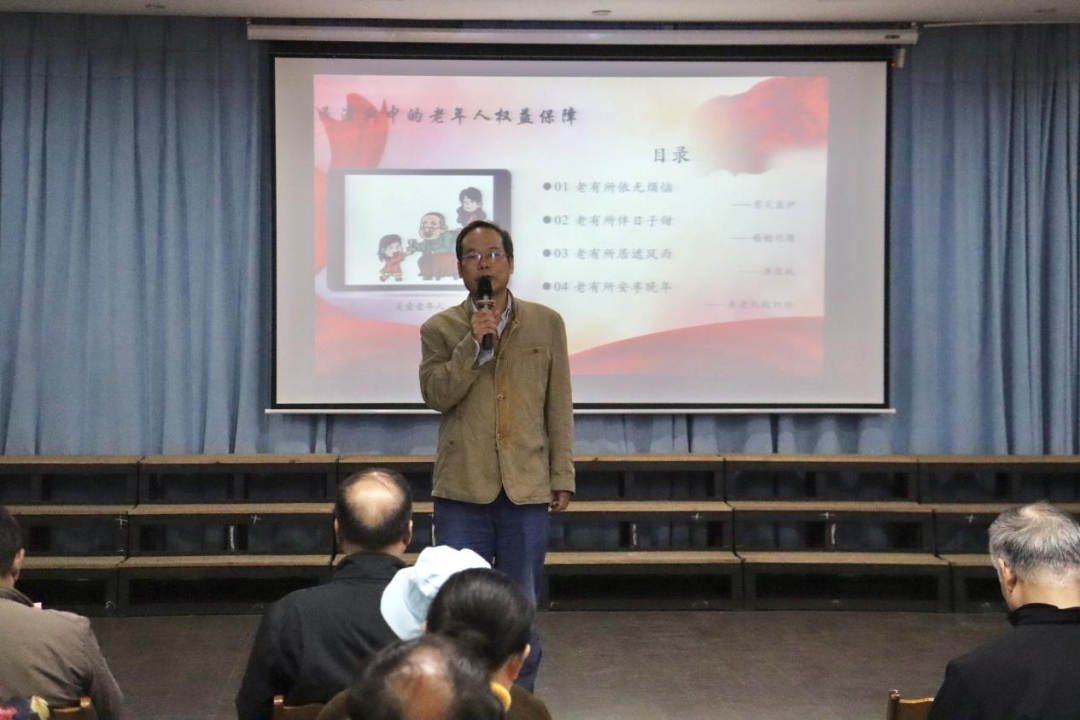 秋意渐浓,金风送爽。为大力弘扬孝亲敬老传统美德和爱老助老社会风尚,切实为我校退休教师做好服务,10月22日,“法护银龄、情暖爱老”敬老月法律分享会在学校老年活动中心大厅成功举办。此次活动由bevictor伟德官网离退休工作部、关心下一代工作委员会、bevictor伟德官网联合主办,bevictor伟德官网关心下一代工作委员会(以下简称“关工委”)、bevictor伟德官网团委承办。bevictor伟德官网离退休工作部部长、党委书记周润其,bevictor伟德官网关工委副主任郭建、李新明,bevictor伟德官网关工委主任、党委副书记黎益君,关工委副主任黄德华,以及bevictor伟德官网五十余名离退休教师出席本次分享会。