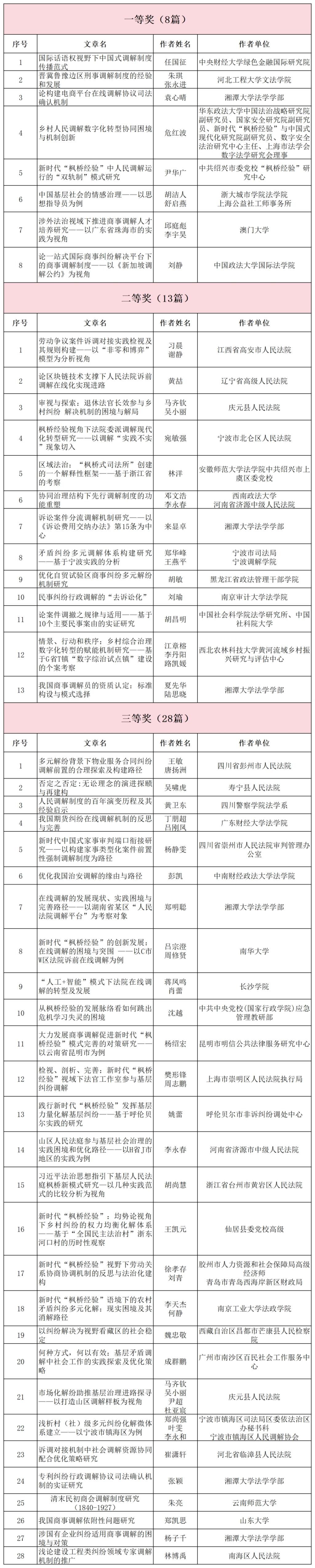 经过两轮专家组的认真评选,本次论坛共产生论文一等奖8篇,二等奖13篇,三等奖28篇,优胜奖18篇。第三届调解论坛将于11月7-8日在浙江宁波举行。