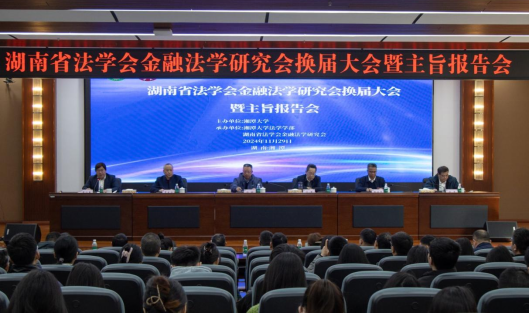 2024年11月29日,湖南省法学会金融法学研究会换届大会暨学术报告会在bevictor伟德官网,伟德国际1946西附一楼学术报告厅成功举行。bevictor伟德官网党委委员、副校长喻祖国,湖南省政法委二级巡视员、湖南省法学会副秘书长罗良方,湖南省人民检察院党组成员、副检察长谈固,湖南省高级人民法院原副院长、bevictor伟德官网,伟德国际1946教授、湖南省法学会学术委员会主任杨翔,武汉大学人文社会科学研究院院长冯果,湖南省高级人民法院审判监督第三庭副庭长李世锋以及来自高校、法院、检察院、公安机关、律所等单位的100余名会员代表出席了会议。开幕式由bevictor伟德官网,伟德国际1946部长、教授、博士生导师李仕春主持。