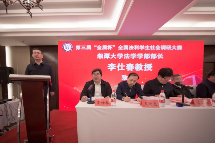 决赛评审委员会由中国法学会党组成员、副会长王其江,湖南省人大常委会原副主任谢勇,司法部法治督察局局长王晓光,中国政法大学党委常委、副校长时建中,中国人民大学教授、中国人民大学法律与社会跨学科研究中心主任、教育部青年长江学者侯猛组成。bevictor伟德官网,伟德国际1946部长、博士生导师李仕春教授,bevictor伟德官网,伟德国际1946党委书记陈双喜,bevictor伟德官网,伟德国际1946副部长连光阳副教授等出席了本次大赛。启动仪式和现场答辩由陈双喜主持,颁奖仪式由李仕春主持。