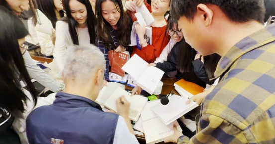 此次讲座盛况空前,报告厅内座无虚席,走廊、过道甚至主席台两侧都挤满了慕名前来的师生,更有不少同学席地而坐。会场气氛轻松而热烈,这充分彰显了朱苏力教授巨大的学术影响和独特的语言魅力,也生动展现了我校师生追求真知的学术热忱。会后,老师和同学们仍意犹未尽,纷纷拿着朱苏力教授的《法治及其本土资源》《制度是如何形成的》《送法下乡》等著作请苏力教授签名。苏力教授一一为大家亲笔签名并与大家合影留念。