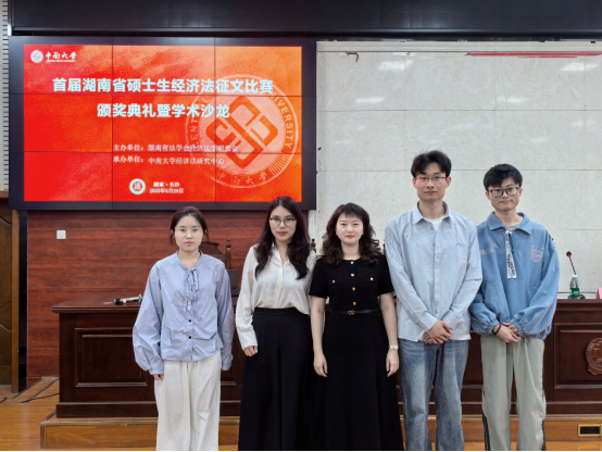 2025年5月24日上午,首届湖南省硕士生经济法征文比赛颁奖典礼及学术沙龙在中南大学麓南校区文法楼221报告厅举行。本次会议由湖南省法学会经济法学研究会主办,中南大学经济法研究中心承办。著名法学家、省法学会原副会长漆多俊出席会议并讲话。省法学会罗良方副秘书长,中南大学法学院党委书记李华东研究员,省法学会经济法研究会名誉会长郑鹏程教授,副会长张德峰教授,中南大学法学院教授李国华等专家学者出席会议。bevictor伟德官网,伟德国际1946硕士研究生王海龙、胡梓晴等应邀参会作论文汇报分享,陈灿祁教授应邀作为与会嘉宾对获奖作者论文进行评议。