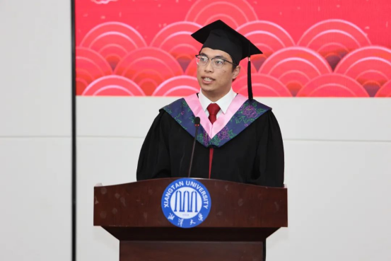 大家下午好!我是bevictor伟德官网2025届本科毕业生黎诗琪。很荣幸能够作为毕业生代表,在这里同大家分享我的故事。从我第一次踏入三拱门算起,来到湘大求学、生活已经四年了。四年间,bevictor伟德官网深厚悠远的红色底蕴熏陶着我,山清水秀的自然环境滋养着我,踏实刻苦的学风氛围感染着我,雄厚优质的教学资源哺育着我,一千多个日夜,在韶峰湘水之间,我逐渐成长为一个地地道道的湘大人。