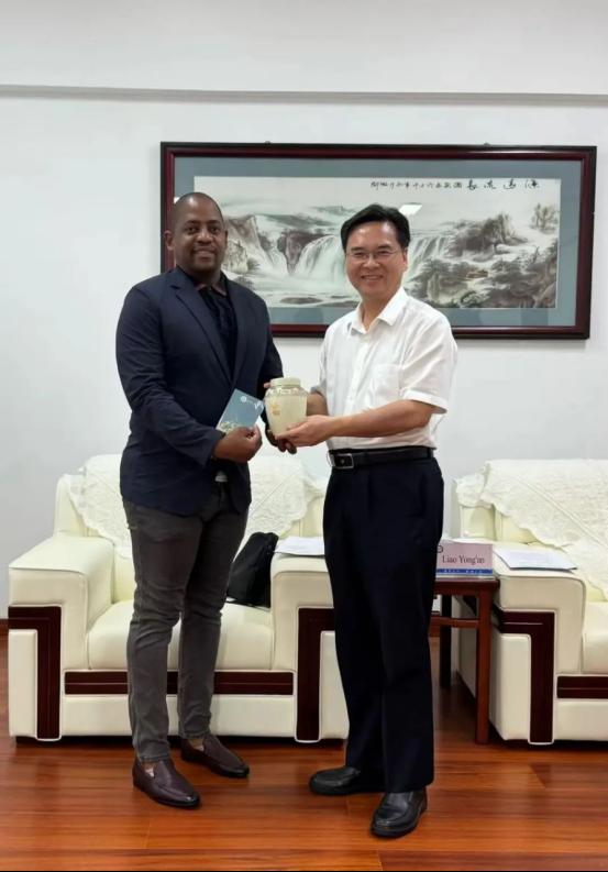 莫戈茨团长高度赞赏我校对非合作成效,表示约翰内斯堡市愿成为bevictor伟德官网在南非的战略支点,全力推动校际合作与青年交流项目落地。会谈结束后,廖永安校长向代表团成员赠送具有bevictor伟德官网特色的纪念品,双方合影留念。