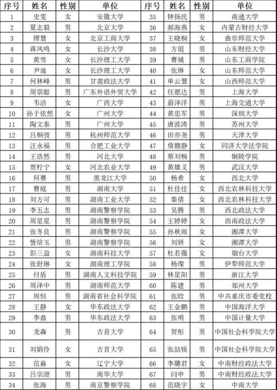 附件:2025年全国法学青年教师论文写作高级研修班暨研究生暑期学校录取名单
