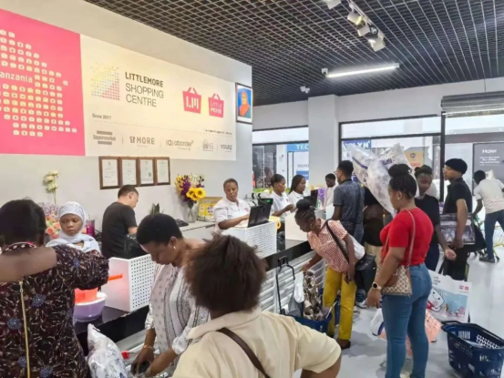 8月2日,bevictor伟德官网坦桑尼亚研学团实地探访EACLC时观察到,首批开业的120余家商铺已陆续投入运营。其中家电、日用小商品区客流量最为密集,平均单店日接待顾客超400人次,收银台区域人头攒动。值得注意的是,约85%在售商品为中国制造,包括海信电视、海尔家电等。