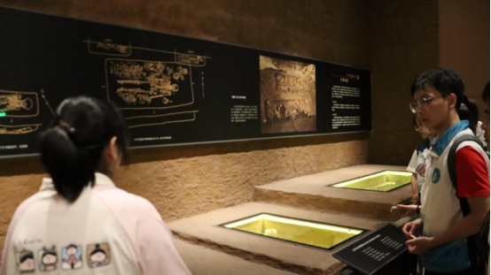 首先,在讲解员的带领下,队员们参观了城头山遗址博物馆。馆内陈列的碳化稻谷、石制农具等文物,直观地给同学们呈现了当时稻作农业的发展水平;制陶、玉器等手工艺品展区,系统地给同学们展示了当时手工业的制作工艺与生产规模。