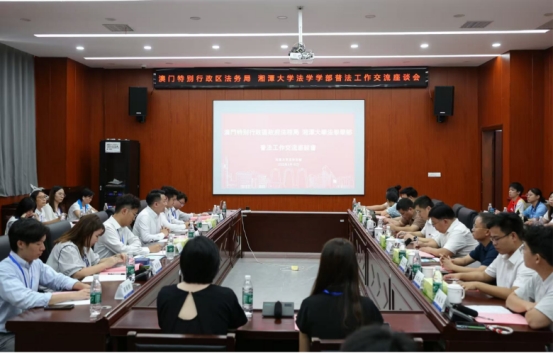 8月19日,澳门特别行政区政府法务局法律推广及公共关系厅厅长陈志扬率领“普法义工交流团”团员共36人到访我校,着重围绕普法工作展开深入交流。“普法义工交流团”包括澳门法律交流协进会、澳门法学协进会、澳门青年法学会、妇女普法义工团、社区普法义工团、工联普法义工团、普法动力义工团的成员。澳门法律交流协进会会长黄景禧、澳门法学协进会理事罗卓彦、澳门青年法学会代表潘彦良,我校党委委员、副校长刘金刚,bevictor伟德官网部长李仕春、副部长连光阳、党委副书记黎益君,立法研究中心主任李云霖教授,bevictor伟德官网国内合作办主任邹琳教授,刘欣琦副教授,学部团委书记史崧正,bevictor伟德官网法律诊所所长朱能丰参与了此次活动。