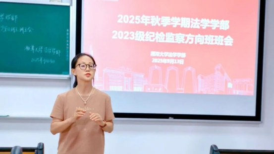 班主任李蓉教授重点围绕学生成长与发展提出殷切期望。一是积极表达诉求,增强沟通能力。在课堂学习与实习实践中,培养发现问题的敏锐力和提出建议的勇气。通过有效的沟通、协商甚至谈判,不断提升解决实际矛盾的能力,从而顺利完成从“学生”到“社会人”的角色转变。摒弃消极抱怨或一味依赖的旧有心态,真正以成熟、负责任的姿态迎接社会挑战。二是明确目标导向,实现自我规划。同学们应当建立科学、系统的自我规划意识,既要深刻理解法学专业的学科特点,也要敏锐洞察社会现实与人才需求,在此基础上理性制定符合个人志向与社会需要的学业及职业发展路径,避免盲目跟风或被动应对,真正掌握人生的主动权。三是作为纪检监察方向班的本科生,应当着力提升法律实务操作能力、政策理解与分析能力以及严谨的逻辑思维能力,在社会实践和各类实习中主动积累经验、拓宽视野,不断强化综合素质,彰显专业特色,努力实现个人成长与社会发展需求的高度统一,成为兼具法治信念与实践能力的新时代人才。