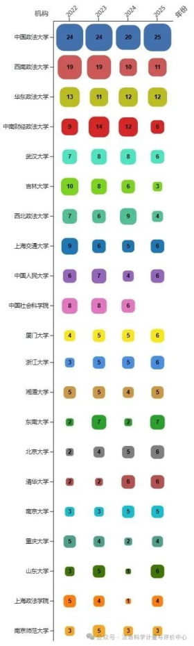 2022-2025年国家社科基金TOP20申报单位年度立项(法学)