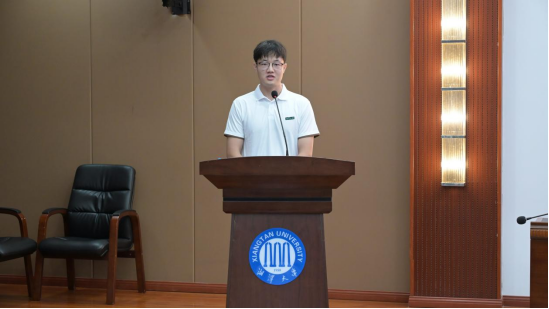 研究生团总支第一副书记吴江龙作为干部代表发言。他从“不忘初心,牢记服务宗旨”“勇于创新,提升工作质量”“团结协作,凝聚工作合力”三个方面与全体研究生干部分享体会,呼吁大家以真诚服务赢得信任,以创新思维推动工作提升,以协作精神凝聚团队力量,以持续奋斗实现自我与集体的共同成长,为“湘大法科”的高质量发展贡献智慧与活力。