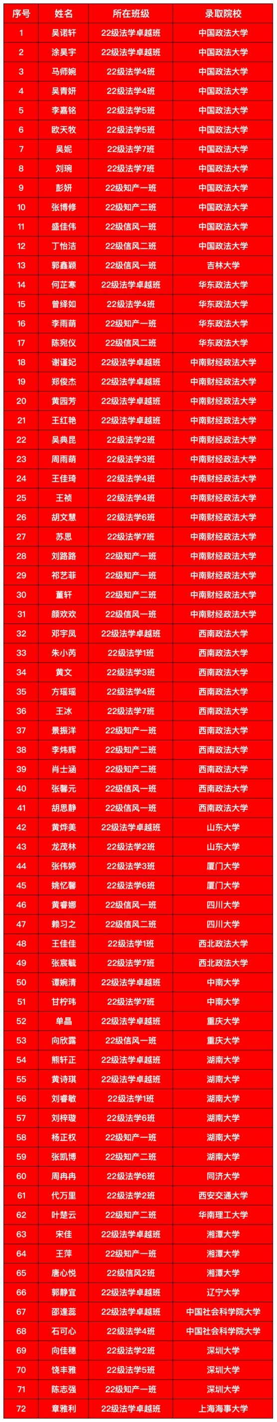 值此国庆佳节,衷心感谢各高校对湘大法科学子的认可与厚爱!学部将以此为新标杆,深耕法学育人阵地,持续提升人才培养质量,为法治中国建设输送更多“湘大法科力量”!