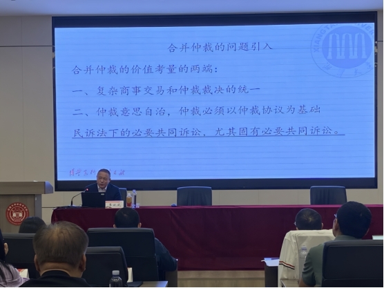 覃斌武教授以“国际仲裁视野下的合并仲裁、分开审理”为题授课。他首先界定合并仲裁的外延范畴,指出非严格狭义的合并仲裁可涵盖仲裁请求的合并、多合同单一仲裁等多种情形;接着对比贸仲委、香港国际仲裁中心等国内外仲裁机构规则,强调不同仲裁机构对于合并仲裁存在明显差异,不能望文生义以国内的相关规则为基准错误理解国外仲裁规则;最后借国外典型案例,分析国际仲裁中合并仲裁的不同样态与立场逻辑,并比对不同法域下主合同与担保、保险合同的相关情形。