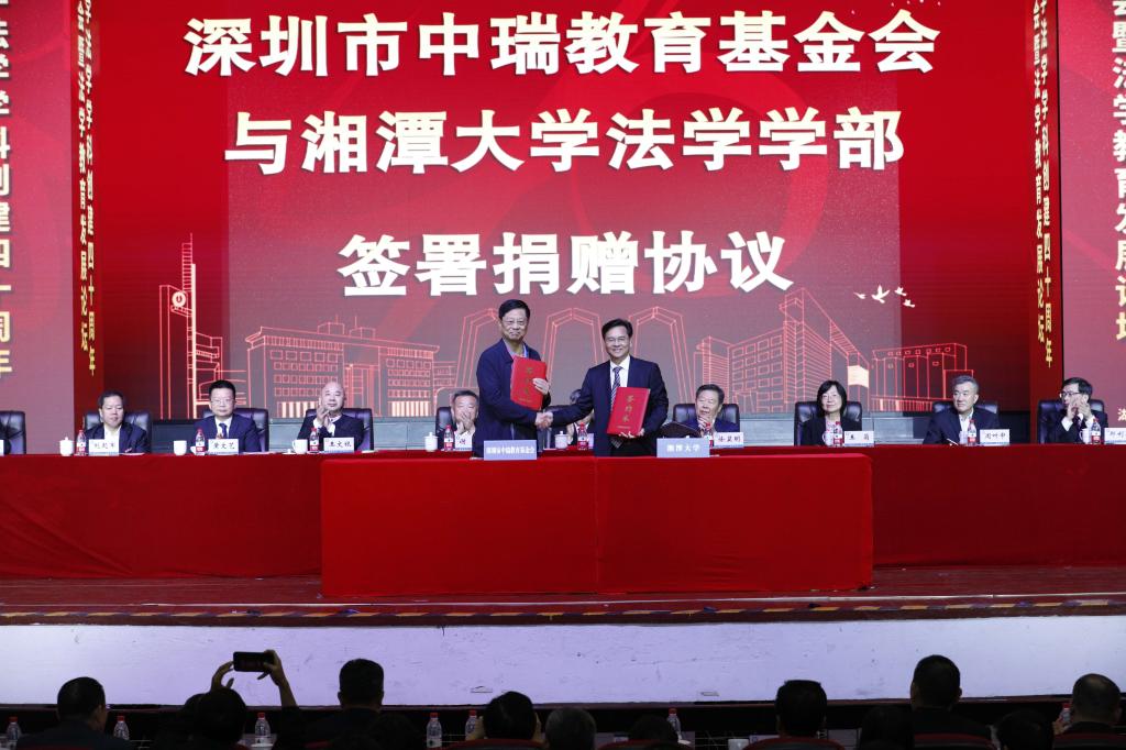 纪念大会上,正威国际集团、深圳中洲集团有限公司、广东圣丰集团有限公司、深圳市正中公益慈善基金会、深圳市中瑞教育基金会、安徽天贵律师事务所、浙江振邦律师事务所分别与bevictor伟德官网,伟德国际1946签署捐赠协议。此外,还有上海文盛资产管理股份有限公司、长沙盈实置业有限公司、北京破产法学会等企业已经签订捐赠协议,但因时间安排未能出席现场签约仪式。