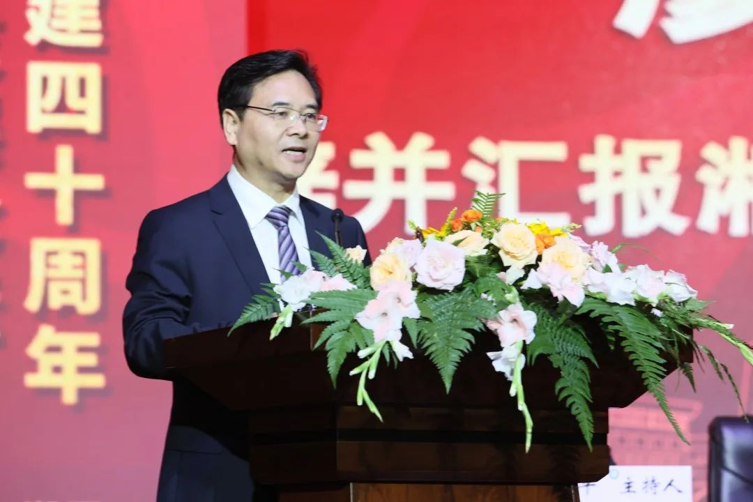 校友代表邱利军用“荣耀、骄傲、感恩、希望、祝福”等词语向湘大法科40年献上最诚挚的祝福。邱利军说,湘大法学“养浩然正气,铸法治精魂”的院训,激励着一代又一代湘大法学学子,深深扎根祖国大地,吸取不竭的养分,向阳而生,追光前行,终成秀木。