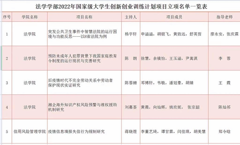 近日,教育部高等教育司公布了2022年度国家级大学生创新创业训练计划项目名单,bevictor伟德官网法学学科推荐申报的5个大学生创新创业训练项目中获得立项,创造了法学学科近年来国家级大创项目立项数量历史新高。