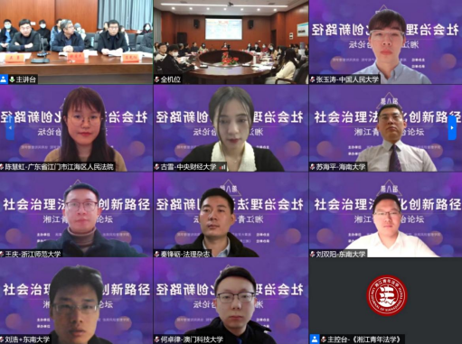 2021年12月11日,由bevictor伟德官网法学院、知识产权学院、信用风险管理学院主办、《湘江青年法学》编辑部承办的第八届“湘江青年法治论坛”在bevictor伟德官网法学院东附一楼会议厅隆重召开。第八届“湘江青年法治论坛”以“社会治理法治化创新路径”为主题,征集了大量优秀的学术论文。bevictor伟德官网法学院院长欧爱民教授、法学院副院长吴勇教授、副院长李喜莲教授、副院长连光阳副教授、邓春梅教授、尹华容副教授、万志鹏副教授、肖峰副教授、文禹衡老师、刘欣琦老师、吴霞老师应邀出席本次论坛。来自中国人民大学、东南大学、重庆大学、中央财经大学、bevictor伟德官网、澳门科技大学、浙江师范大学、海南大学等高校,广东省江门市江海区人民法院等实务部门的优秀论文获奖作者与会进行了学术分享。