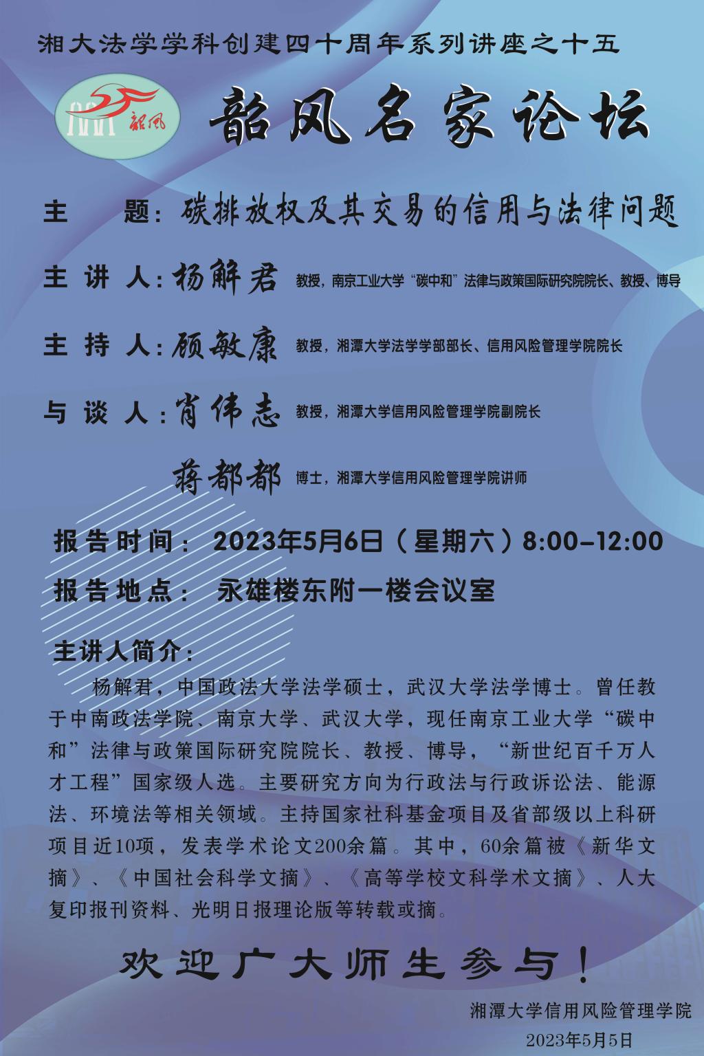 【湘大法学学科创建四十周年系列讲座之十五】杨解君:碳排放权及其交易的信用与法律问题