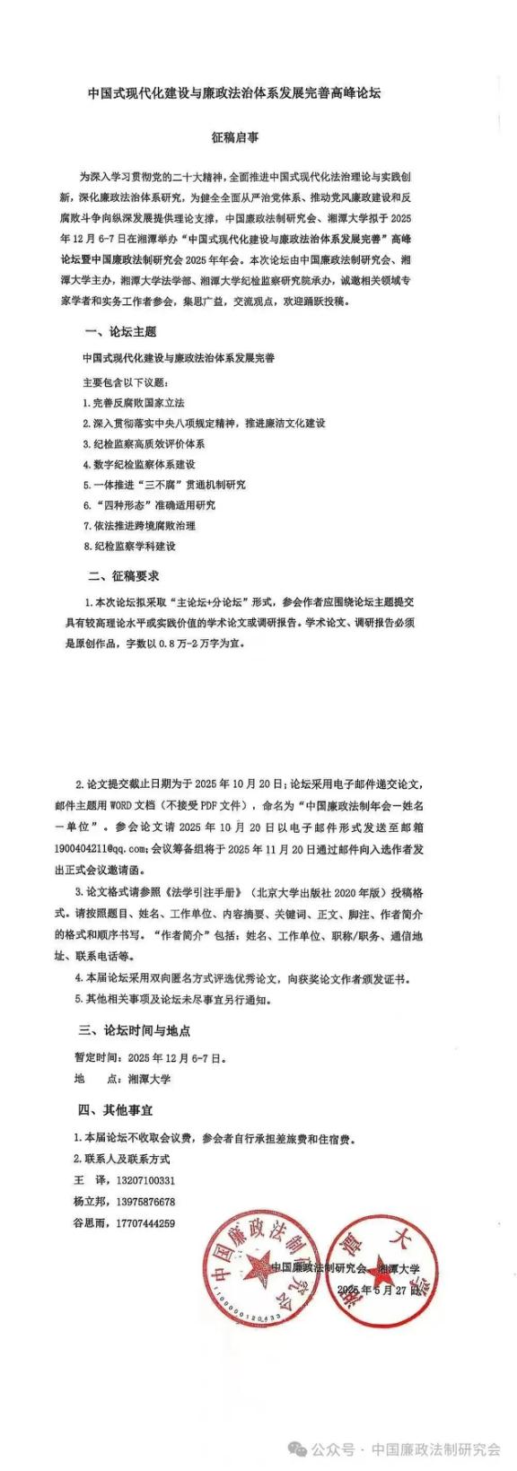 征稿启事|中国式现代化建设与廉政法治体系发展完善高峰论坛