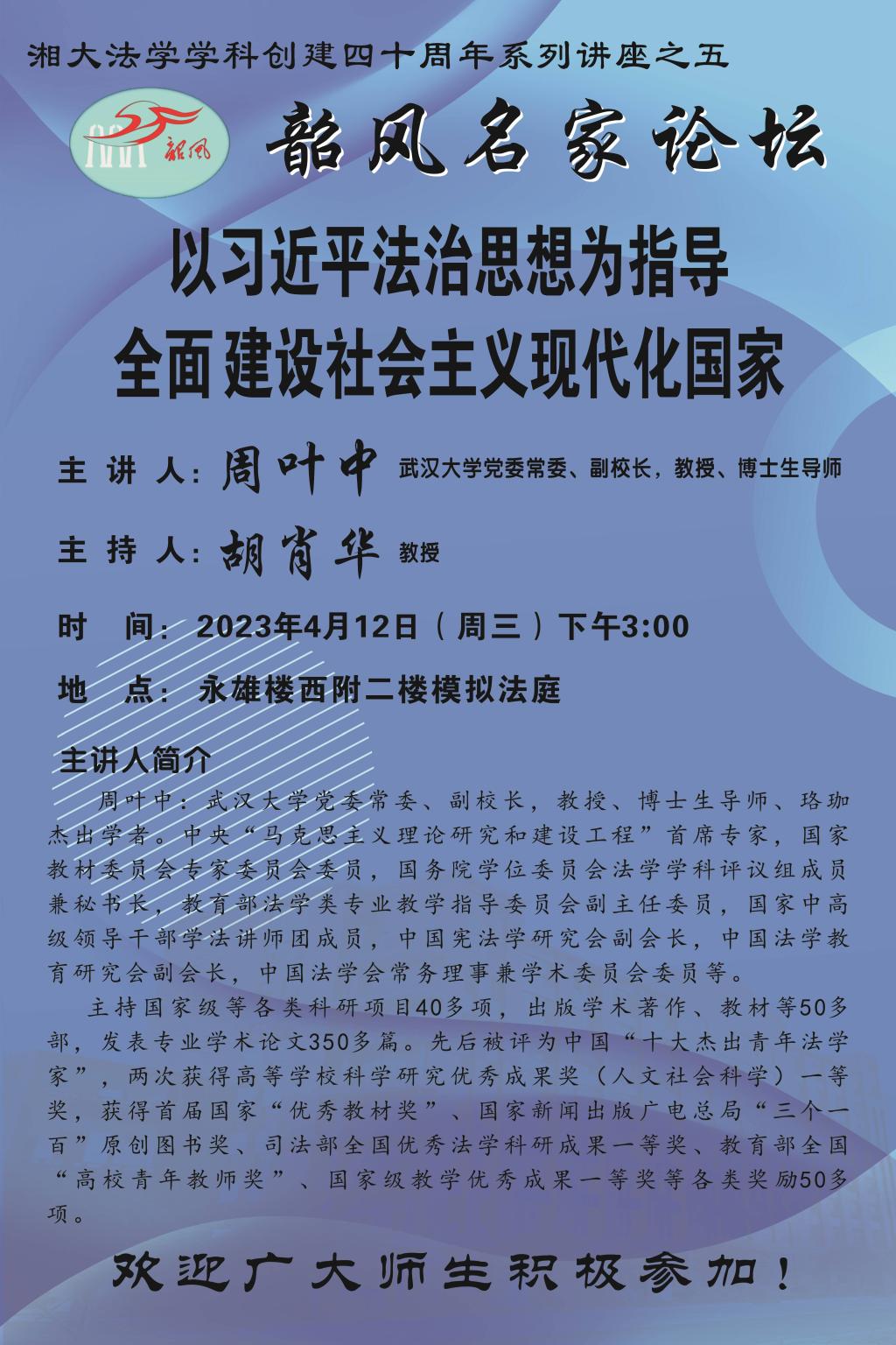 【韶风名家论坛】湘大法学学科创建四十周年系列讲座之五:以习近平法治思想为指导全面建设社会主义现代化国家