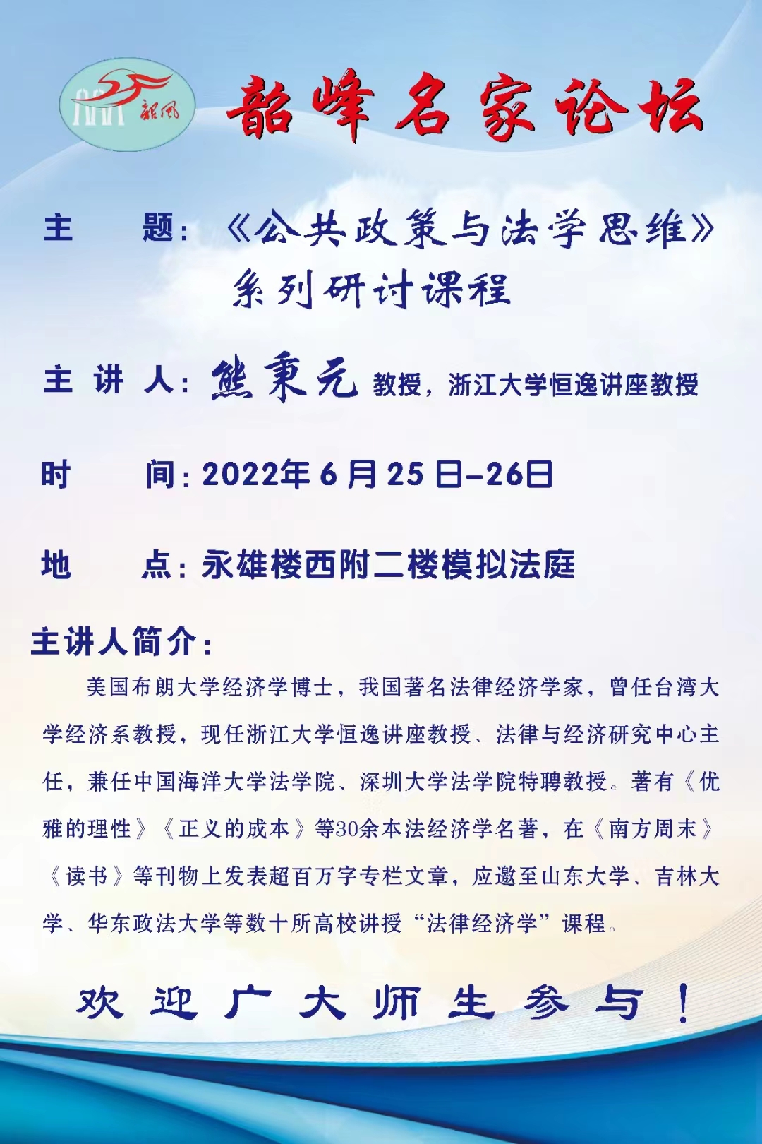 讲座名称:《公共政策与法学思维》系列研讨课程