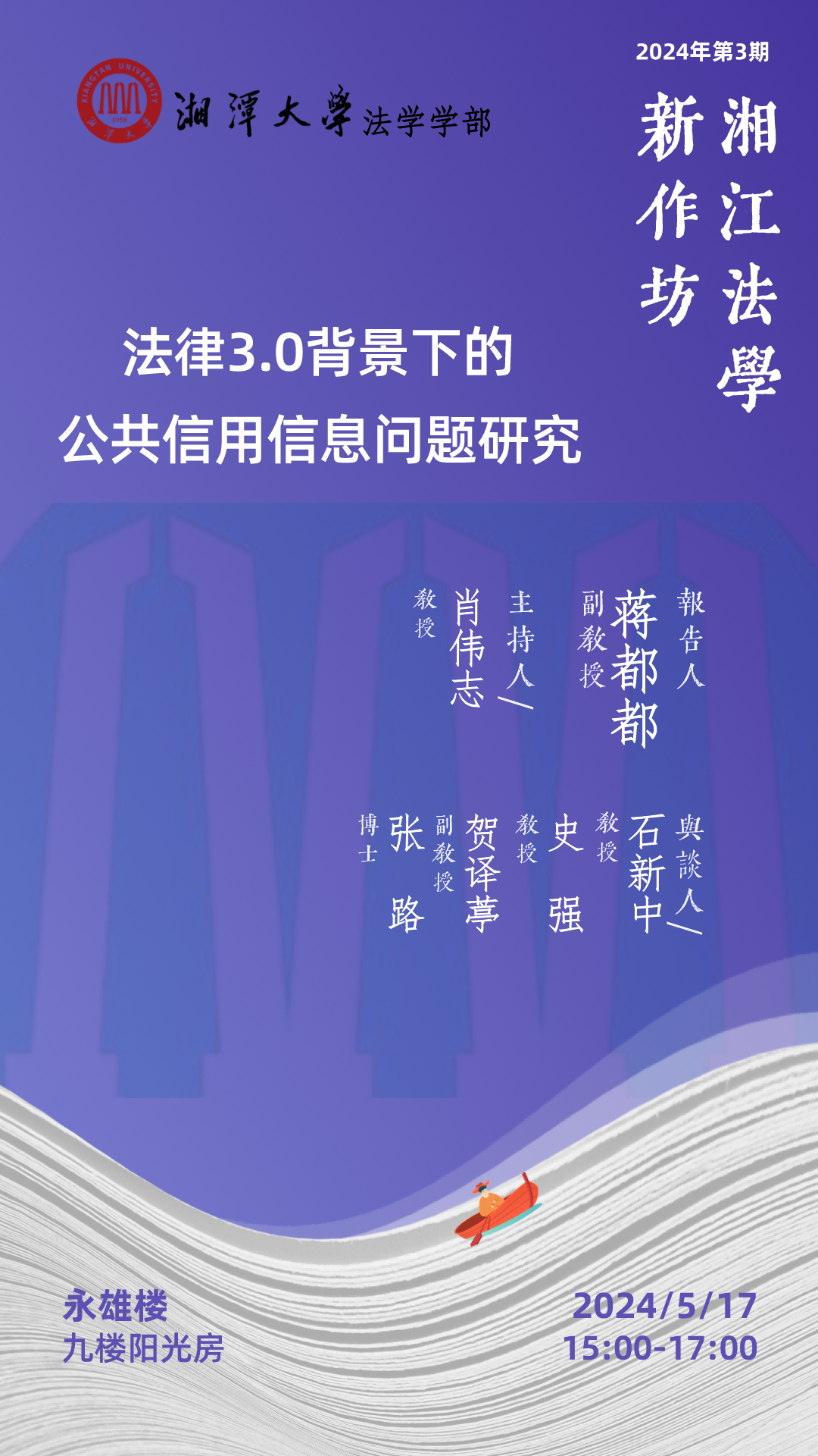 【湘江法学新作坊】2024年第三期:法律3.0背景下的公共信用信息问题研究