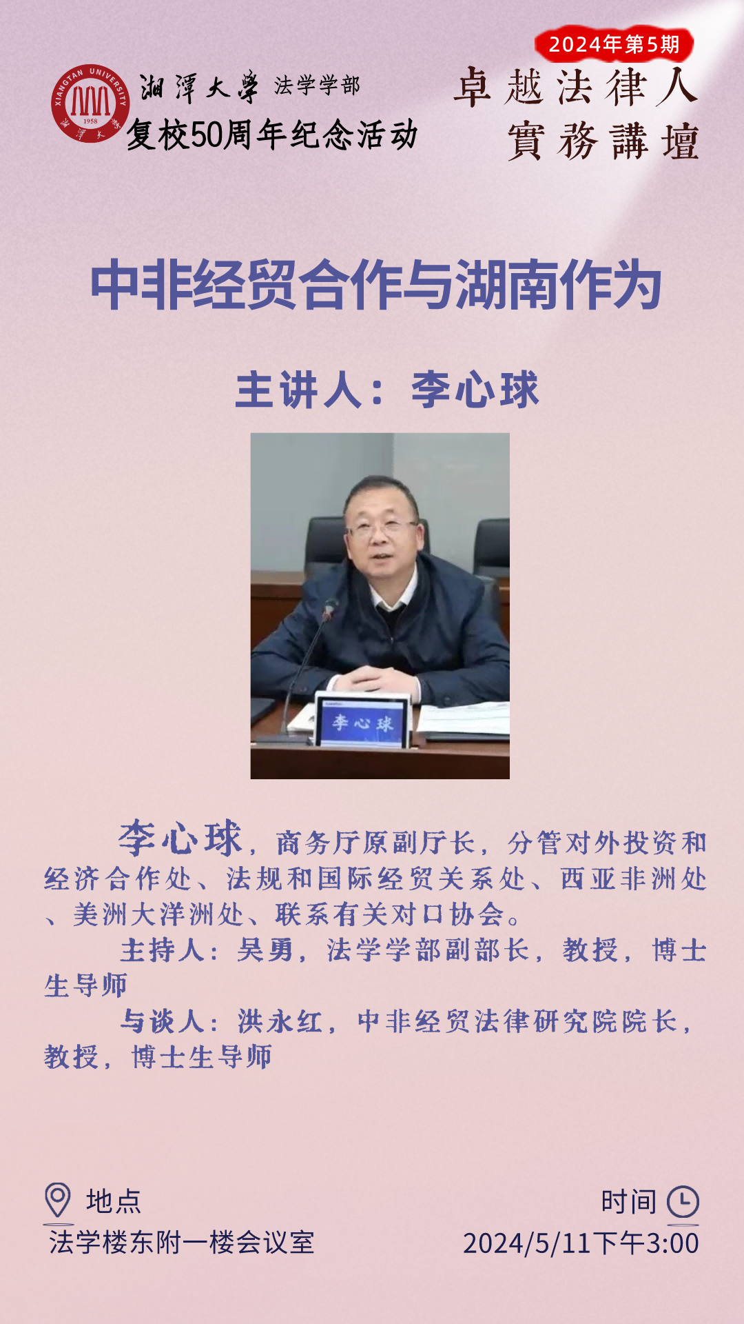 【卓越法律人实务讲坛】2024年第五期:李心球——中非经贸合作与湖南作为