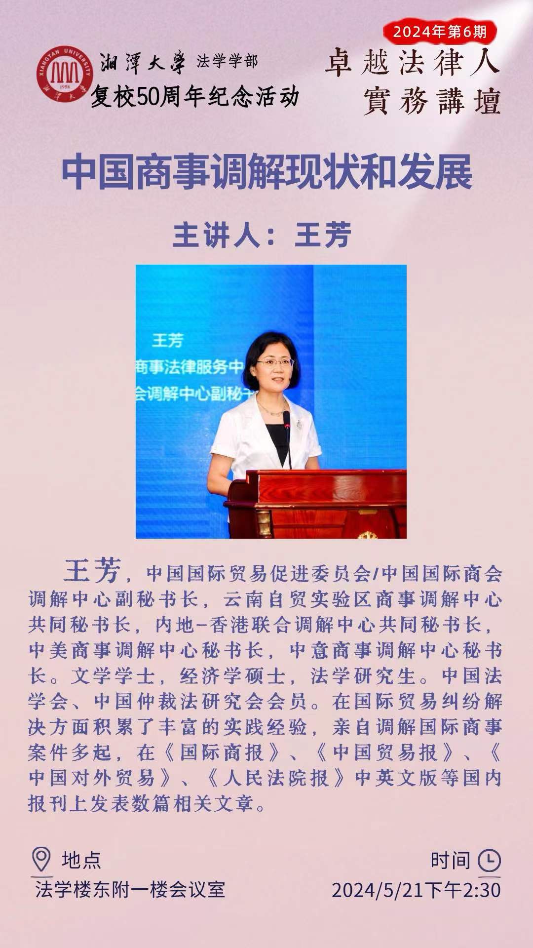【卓越法律人实务讲坛】2024年第六期:王芳——中国商事调解现状和发展