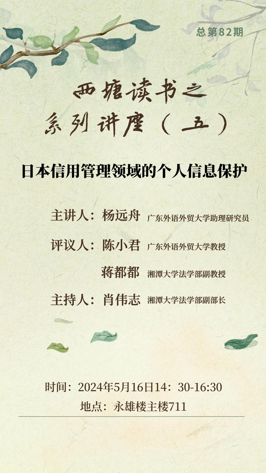 【西塘读书】之系列讲座(五):日本信用管理领域的人人信息保护