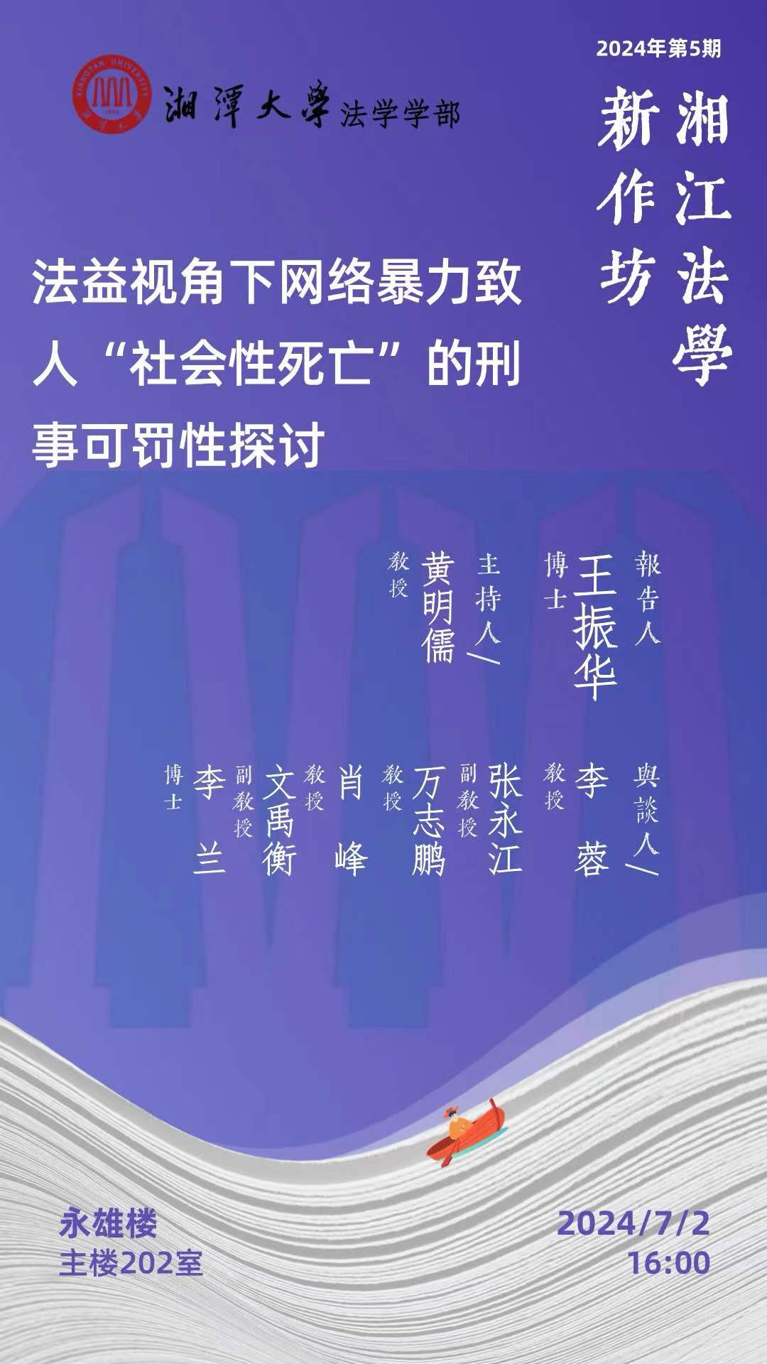 【湘江法学新作坊】2024年第五期:法益视角下网络暴力致人“社会性死亡”的刑事可罚性探讨