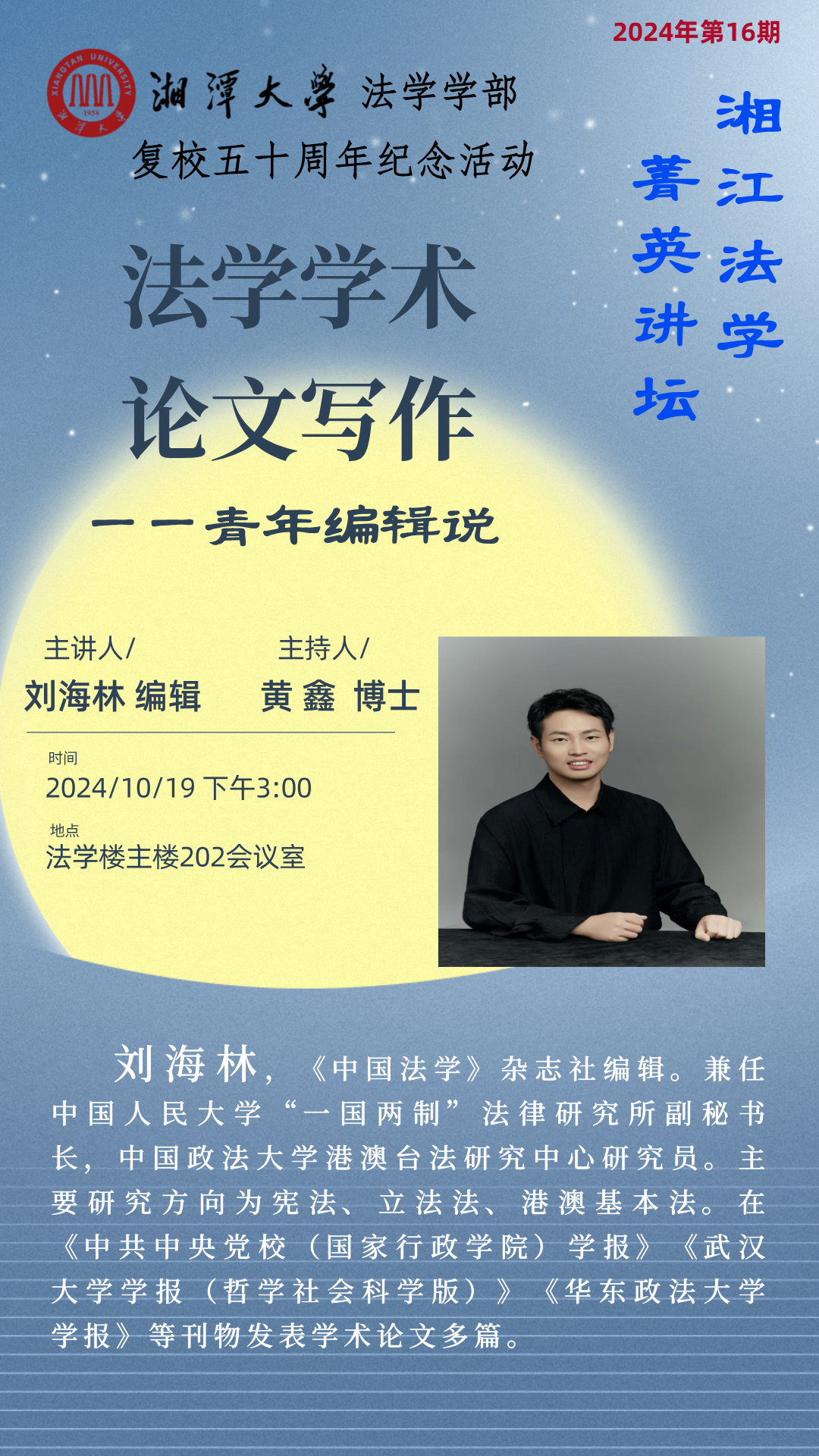 【湘江法学菁英讲坛】刘海林 :法学学术论文写作——青年编辑说